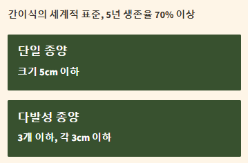 - 종양의 개수가 3개 이하이고, 각각의 크기가 3cm 이하인 경우