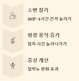 👉 단순히 습관적으로 참는 것은 방광에 무리를 줄 수 있습니다. 하지만 방광 훈련처럼 전문가의 지도하에 정해진 시간 간격을 점차 늘려나가는 것은 빈뇨 증상 개선에 도움이 됩니다.
