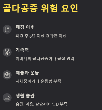 그래서 오늘은 많은 중년 여성분들이 궁금해하는 “골다공증 위험, 나도 해당될까?”와 골밀도검사에 대한 정확한 정보를 나눠보려고 해요.
