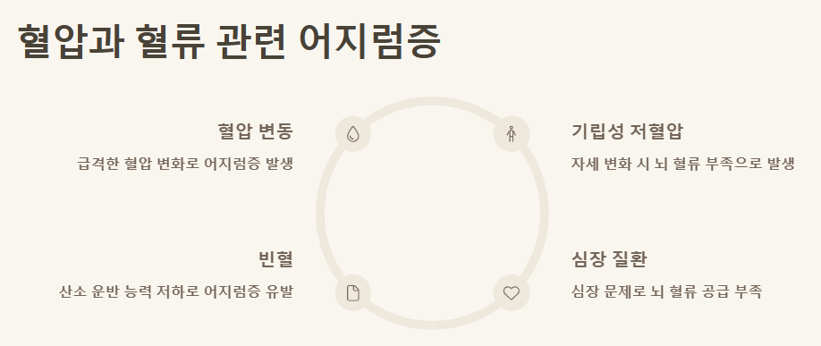 혈압이 급격히 떨어지거나 올라가면 어지럼증이 동반될 수 있어요. 기립성 저혈압처럼 자세를 바꿀 때 순간적으로 혈액이 뇌로 충분히 공급되지 않으면, 눈앞이 깜깜해지거나 몸이 붕 뜨는 느낌이 들 수 있어요.